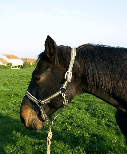 | Dire merci | Alros Déci va beaucoup mieux aujourd'hui. J'avoue que je suis pas fan des antiinflammaotires, mais là pour le coup ca lui a fait beaucoup de bien. Il y a encore des raideurs, mais les flexins latérales des deux côtés sont presque ok au test du bout de pain au sol elle a encore un peu de mal à descendre mais ca va mieux. Elle m'a fait un peu courir dan sle parc pour l'attraper. Au début, elle m'a laissé l'approcher sans soucis ( cela m'avait un peu étonné de sa part) et quand elle a senti le licol elle s'est carapatée. J'ai mis 10 minutes à l'attraper ensuite. A chaque fois qu'ils vont au grand parc c'est le même chantier au début. Ils ont trop peur qu'on les remette au box. J'ai fait les soins à Déci puis je suis partie zieuter un concours cso et ma soeur devait s'occuper de Neyrac... ben elle n'a jamais réussi à l'attraper... Je m'y collerait demain. J'avoue que de lui ça m'étonne, mais ça me fait un peu plaisir dans le sens ou du coup il a l'air maintenant de bien apprécier le parc. En fait Elphe ce qui me chagrine c'est que là ils sont 5 dans le parc: 3 juments et 2 hongres. Et là on doit rajouter encore deux hongres très dominants et mal éduqués du coup c'est vrai je ne cache pas mon appréhension tant sur le plan de mes chevaux que sur le plan humain. |