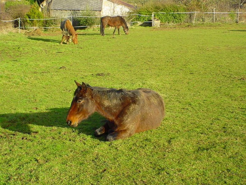 | Dire merci | Nouvelle des petits aujourd'hui Pasha cool dans son près Pour gitane petit travail sur le plat, épaule en dedans et hanches en dedans. La louloute a bien travaillé. Pour narcos travail en longe et ballade demain matin Majyc a été monté par sa maman il était super. Voila pas de photos car problème de batterie |
