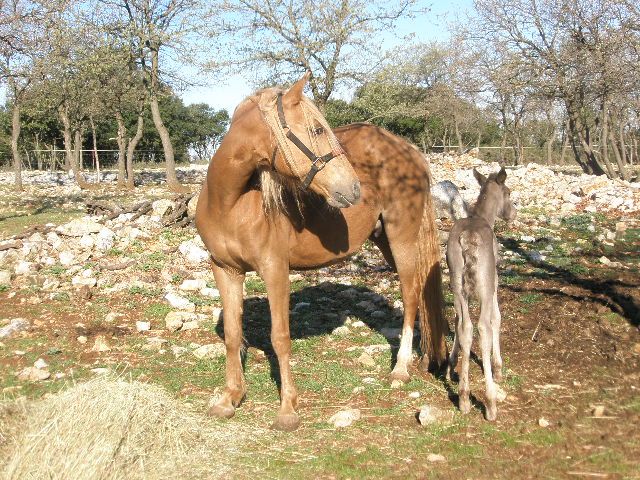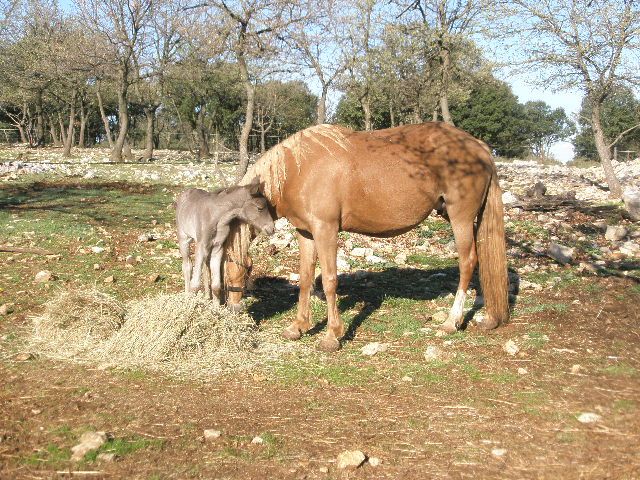 | Dire merci | Elle aura des supers pieds grace à tes cailloux... jamais besoin de fers... ![]() Nous avons empierré les paddocks ou ils passent l'hiver (de novembre à mai), Anouck qui a maintenant 8 mois, dont 5 passés sur les pierres a des pieds durs comme la pierre et y est à l'aise comme sur de l'herbe. Mais ils seront tous très content de bientôt remanger de l'herbe fraiche! |