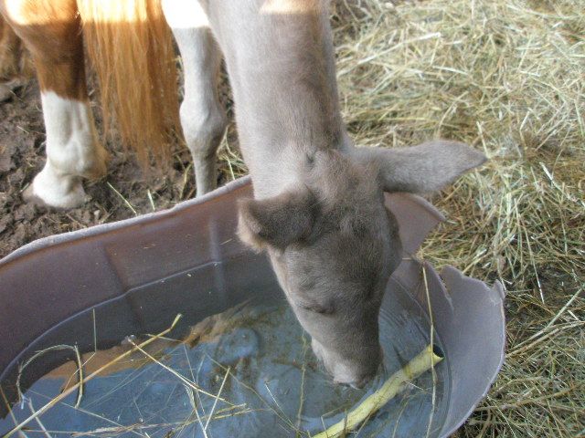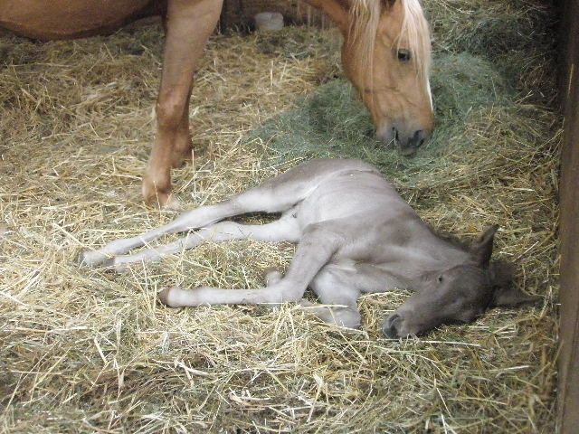 | Dire merci | En effet, la crinière de Vivian paraît plus claire que celle de Stetson à la naissance. Tes poulains ont de jolies têtes, c'est sûr! On voit bien la différence avec la longue tête de Stetson. Il faudrait que je vienne voir ta troupe pour me faire une idée. |