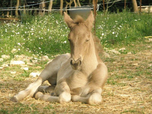 | Dire merci | rho la vache !!! Il a l'air d'avoir une de ces crinières .Il va devenir aussi beau que son père ! |