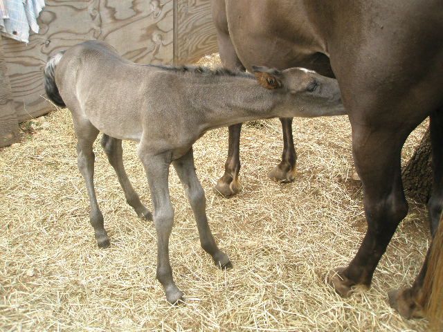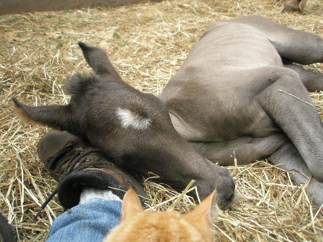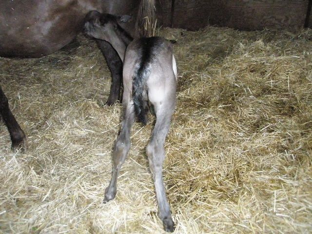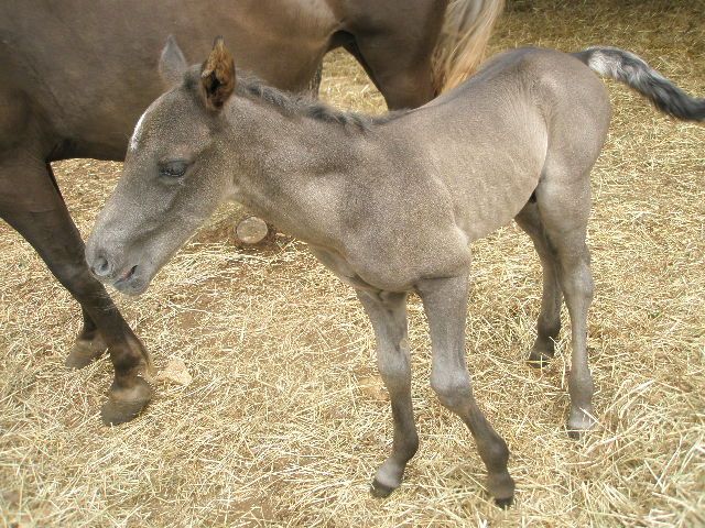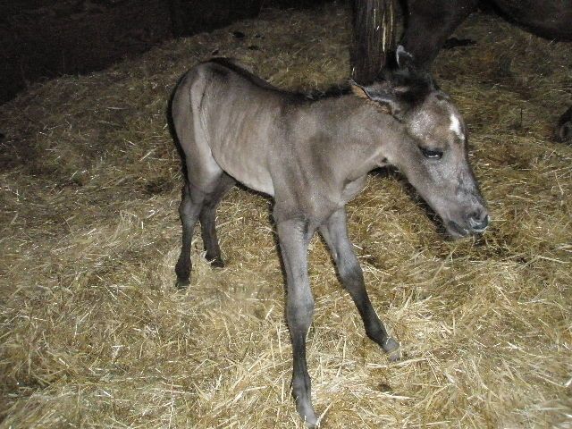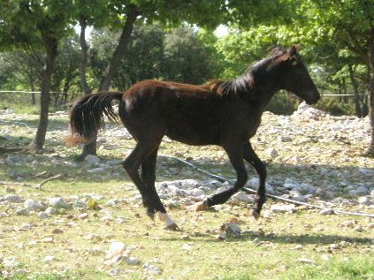 | Dire merci | Génial Syl! Je suis contente pour toi, quel bonheur! Il est très mignon ce poulinou Rocky! Je sais que tu souhaitais une pouliche mais ça n'enlève rien à sa beauté. Pour la couleur, en effet, difficile de se prononcer. Il a le crin noir en tout cas. As-tu d'autres photos de lui? |