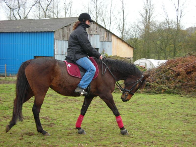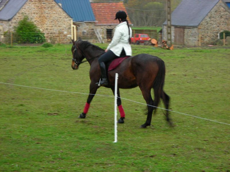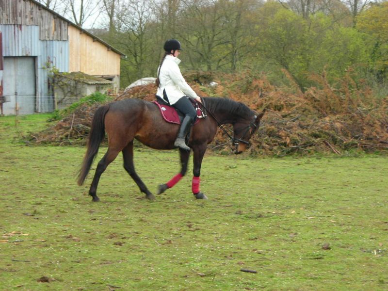 | Dire merci | Sur le plat toujours. ![]() Elle commence à me faire de jolies épaules en dedans à main gauche, elle vient se placer, toute légère. Bon c'est pas encore parfait, mais ça vient, ça vient... Et on a sautouillé pour finir, c'était chouette! ![]() |