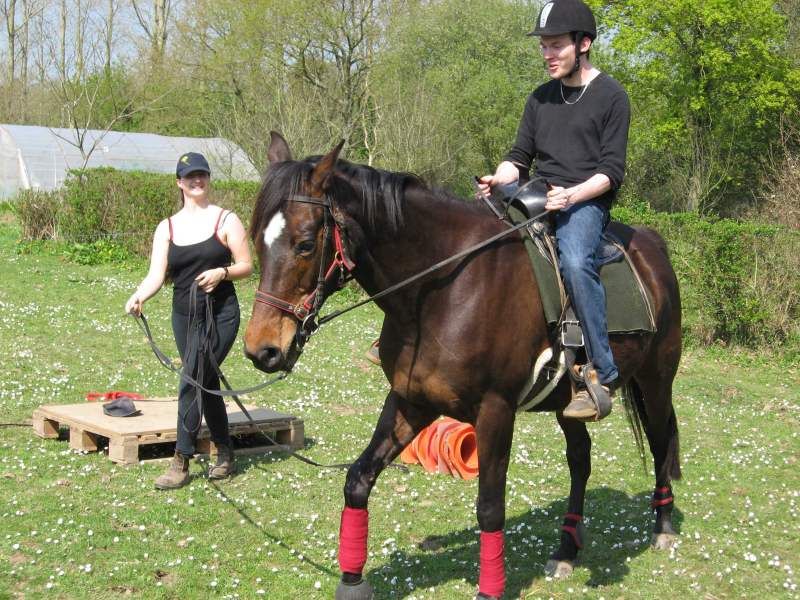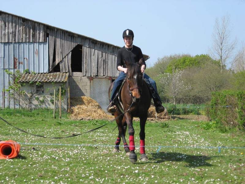 | Dire merci | Roooh il s'est pas si mal dépatouillé... bon, on a fait que du pas bien sûr! Mais vu qu'il semble t'avoir fait des commentaires désobligeants, obligé, faut qu'il revienne monter Belline... et cette fois je vais lui apprendre... le TROT!!! ![]() |