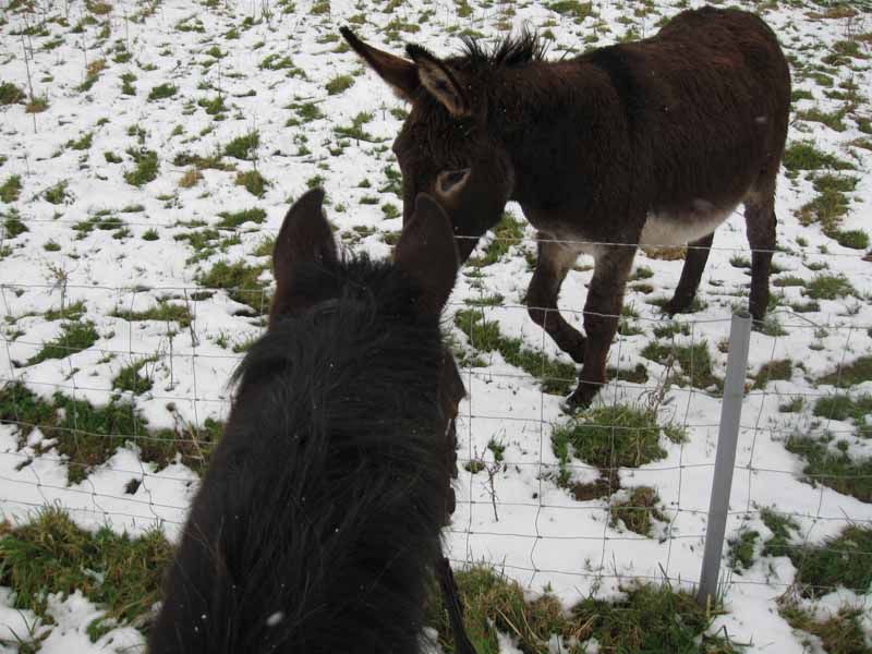 | Dire merci | Et les chevaux ne réagissent pas trop à la présence de l'âne ? |