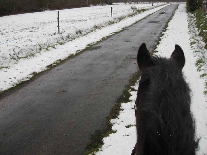 | Dire merci | Alors... Donc en début d'aprem, j'arrive chez Bellinda... ![]() La morue est perplexe... ![]() Qu'à ela ne tienne! On selle, on bride, et on y va! ![]() On en profite pour dire bonjour à Mathilde... ![]() Et puis zou, on part! ![]() La morue semble intriguée par ces nouveaux paysage... ![]() ![]() Potoclop, potoclop... ![]() On a pris à droite, en direction du manoir! ![]() Bellinda semble s'amuser à marcher dans la neige! ![]() C'est qu'on a pas l'habitude de voir ça nous! ![]() Toujours aussi attentive... ![]() On arrive au manoir... ![]() Ensuite on a bifurqué... caméra embarquée, au pas d'abord... [obj]http://www.youtube.com/v/QZnqvsh-WOg&hl=fr&fs=1[/obj] Et pour la suite, ben il faut attendre que you tube daigne tout charger! |