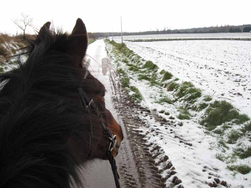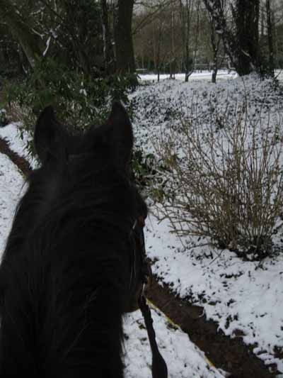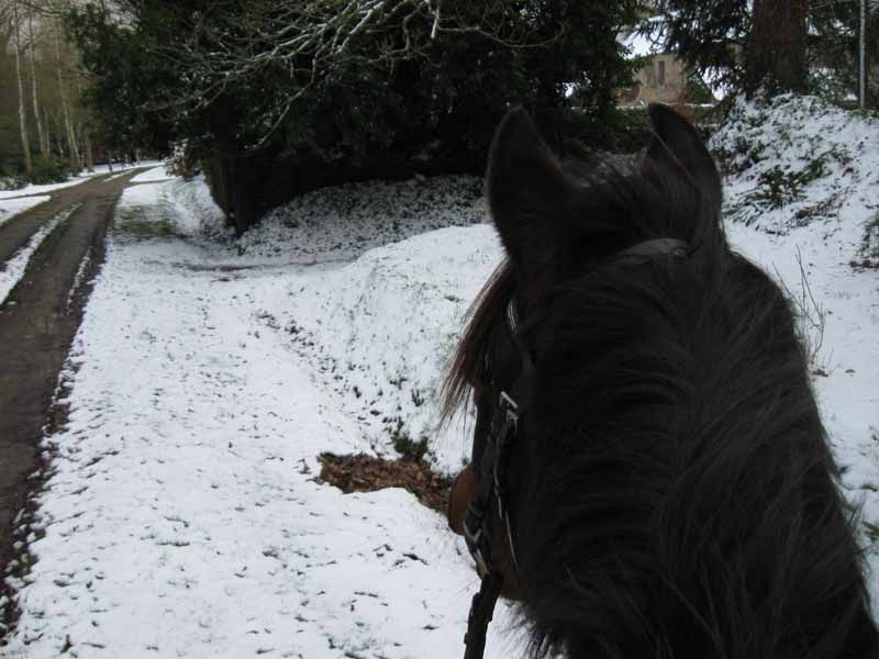 | Dire merci | Je suis allée voir Belline, et j'ai pas pu m'empêcher de la seller pour aller faire un tour! ![]() j'en rêvais depuis longtemps!!! Bien sûr ça va paraitre ridicule pour ceux qui ont l'habitude de la neige, surtout qu'il n'y en a pas beaucoup, mais c'était trop bien! ![]() J'ai fait plein de photos et même des vidéos. |