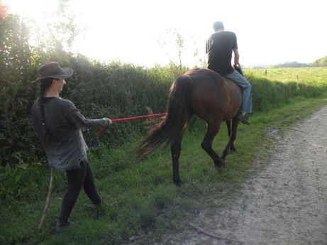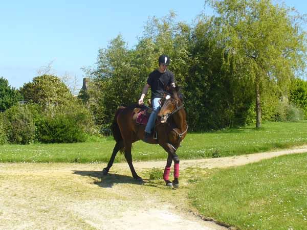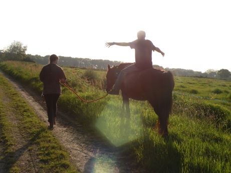 | Dire merci | Val, j'ai mis à BW les rênes qu'il m'a offertes, pour lui prouver que je m'en sers! Merci cyberds, c'est vrai que je préfère toujours ma morue à vrai dire! Pour le parcours de VTT, on le fait depuis longtemps avec Belline et elle adore ça. Par contre la seconde fois où je l'ai fait, elle a tellement attaqué une bosse que j'ai fait un bond de 30 cm au dessus de la selle! Jericho et BW m'ont entendue glousser comme une dinde! Message édité le 29/05/09 à 23:46 |