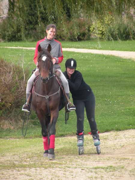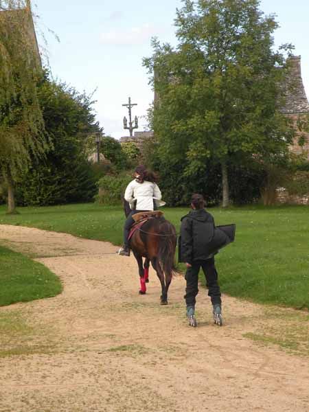 | Dire merci | Allez, hop, après la visite de l'ostéo on recommence à mettre la morue au boulot! ![]() Bon, on commence, soft, balade au pas! |