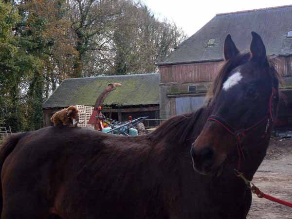 | Dire merci | C'est bien les chevaux avec une tache blanche, on ne peut pas les louper ! |