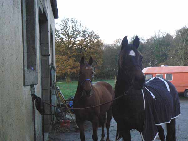 | Dire merci | Petite chronique; Tout d'abord je ne partage pas votre appréciation sur la photo, non Belline et Ode ne guettaient pas la bouff, j'ai une autre photo sur laquelle elle regarde à l'opposé, mais c'est sûr j'ai une tendance certaine l'anthropomorphisme. Embauche hier pour un nouveau boulot et chomage technique aujourd'hui, be oui c'est çà les vieux, ils vont plus vite que la musique, j'ai donc pu m'occuper des orphelines ce matin ! C'était la fête, un raffut pas possible et des coups de pieds dans les portes de box à 8h30. Les miss vont profiter d'un temps exceptionnel : soleil sur la bretagne. Allez pour ce noêl carottes et carottes ! Message édité le 24/12/11 à 15:22 |