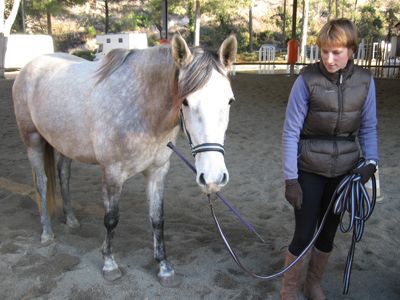 | Dire merci | Son arrivée à la pension le 4 décembre 2007... ![]() C'était la première fois qu'elle montait et descendait d'un van et bien... presque les doigts dans le nez !!! Toujours aussi gentille et curieuse ma louloute. ![]() Dans le rond de longe : ![]() Toujours cette bonne bouille, cette tête de fripouille !!! ![]() |