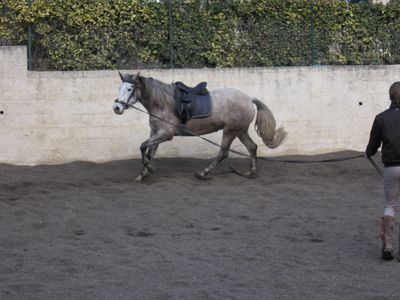 ce fut le montoir jusqu'à ce jour parfait mais là AIE au moment de chausser mon étrier droit coup de cul et saut de mouton, maman par terre, pas CONTENTE...