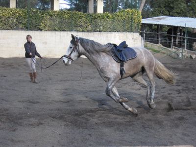 | Dire merci | En ce moment ma louloute me teste beaucoup , après un problème pour tourner à gauche à la longe, ce fut le montoir jusqu'à ce jour parfait mais là AIE au moment de chausser mon étrier droit coup de cul et saut de mouton, maman par terre, pas CONTENTE...![]() Comme la miss à... comment dire... un peu, voir beaucoup, peur de sa selle (elle a pourtant été débourrée, maintennat je me demande un peu comment !!!) et ben on reprend le sellage. C pas gagné , pas moyen de rester en place, "c quoi ce truc que tu veux mettre sur mon dos !!!" et j'en passe...![]() |