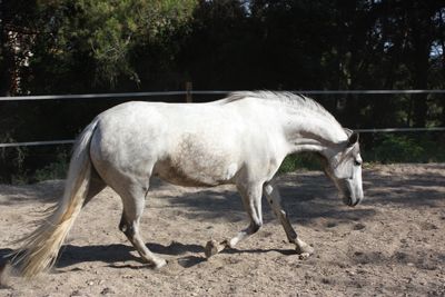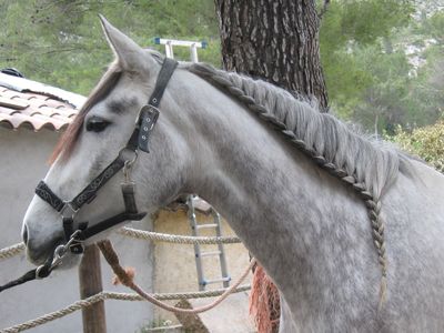 | Dire merci | Je me décide enfin à ouvrir ce post pour vous présenter Paloma, pouliche PRE ONC de 3 ans et demi. On commence par le début : Notre première rencontre... je n'ai pas tout de suite craquée et pour cause je ne voulais ni jument ni cheval gris mais elle m'a fait fondre et mes convictions avec ...!!!!![]() Premier essai : une balade le long de la durance (84) avec deux entiers et un hongre ... un amour de pouliche, elle a été adorable, de quoi me faire fondre... La joie se lie sur mon visage... non ?! ![]() Sa petite bouille : de plus près... ![]() Bien sûr il y a eu pleins d'autres essais, des séances en longe, des balades à pieds, des séances à cheval, des séances de pansage et papouilles (aime pas trop trop !!! petite pouliche sauvageonne qui sort du pré et n'a jamais eu de bisous et papouilles !!!) ![]() Et voilà j'étais mordue... raide dingue de cette pouliche... alors après une visite véto très concluante... j'ai signée l'achat. Mon premier cheval, mon rêve qui se réalise... que de bonheur et de boulot en perspective !!!!Ce message a été modifié par un modérateur. |