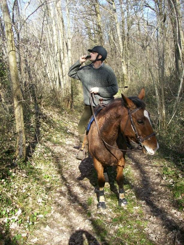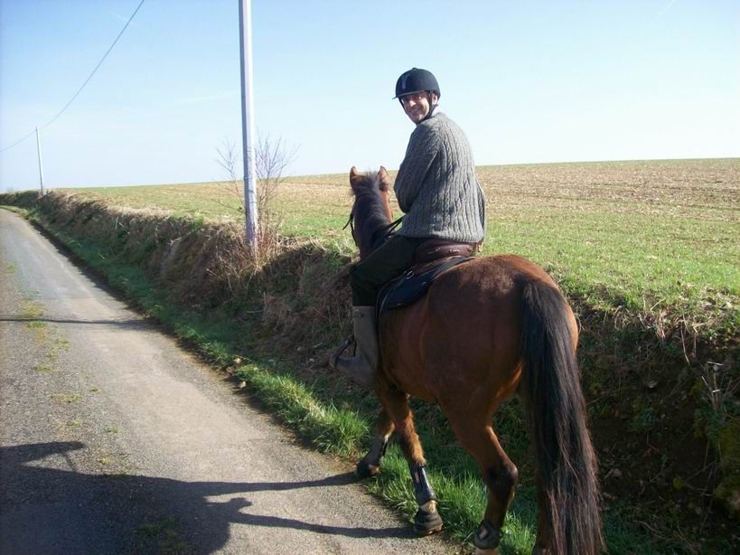 | Dire merci | notre cavaliere à été retenue au fond de son lit par....... l'histoire ne le dit pas... Sympa une balade entre mecs sans fille pour blablater au moins vous avez pu écouter les petits oiseaux chanter (ça c'est si on suppose que les hommes blablatent moins que les filles )j'espère que les chevaux marchaient toujours droit à la fin |