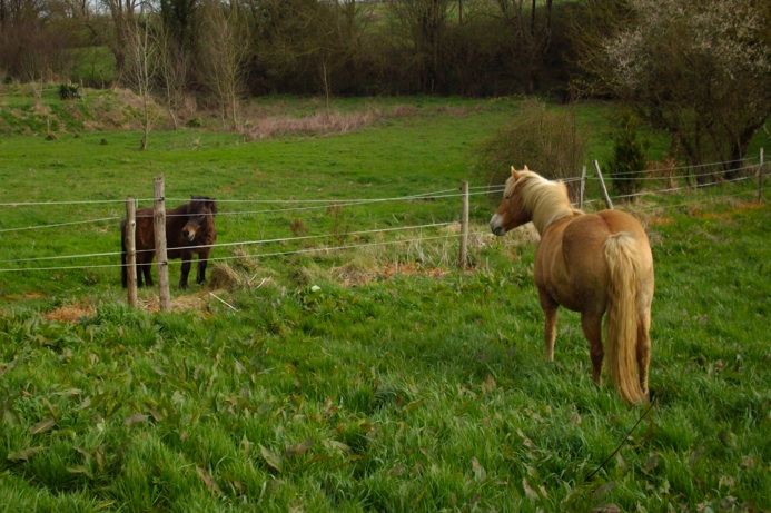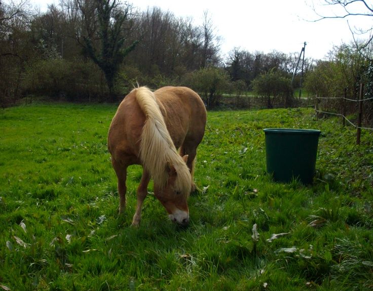 | Dire merci | salut tout le monde aujourd'hui j'ai travaillé un peu Hekla dans la carrière pour voir comment réagissent les 2 autres juments (la carrière est au milieu du pré). 9a c'est plutôt bien passé, elles ne se sont pas trop énervées. Hekla était pas trop mal, elle a eu un vrai déclic il y a une semaine et maintenant elle accepte de partir sur son cercle et de tourner en longe elle restait bien connectée, bref elle était nickel Sinon, la séance n'a duré que 15 mn parce que j'ai dû rentré à cause des giboulées J4EN AI MARRE DE CE TEMPS POURRI vivement le soleil |