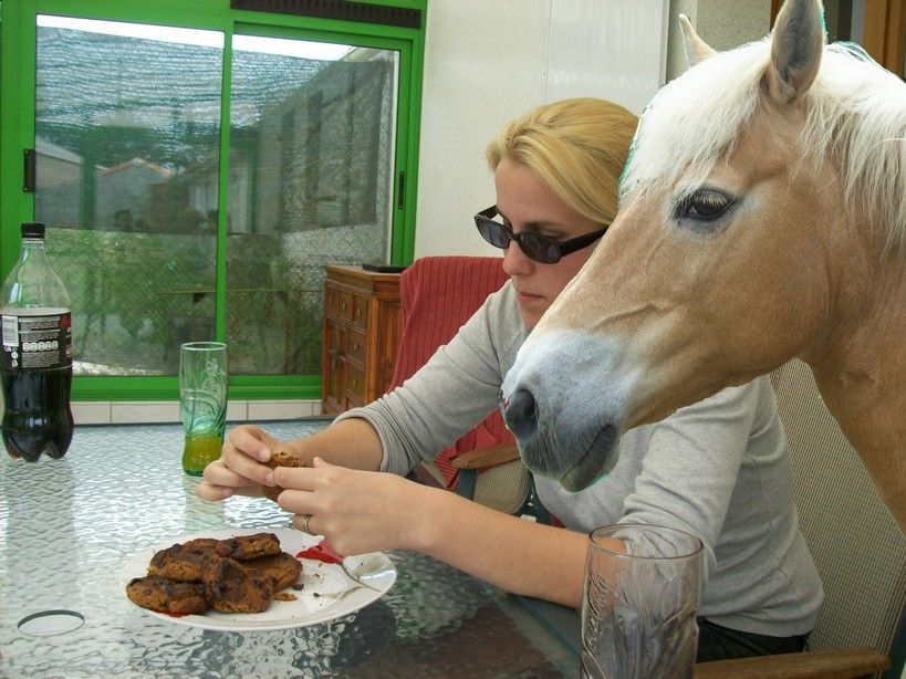 | Dire merci | tu devrais t'entrainer en faisant le loooonnng chemin depuis le pré en van pour pas que les filles marchent trop... |