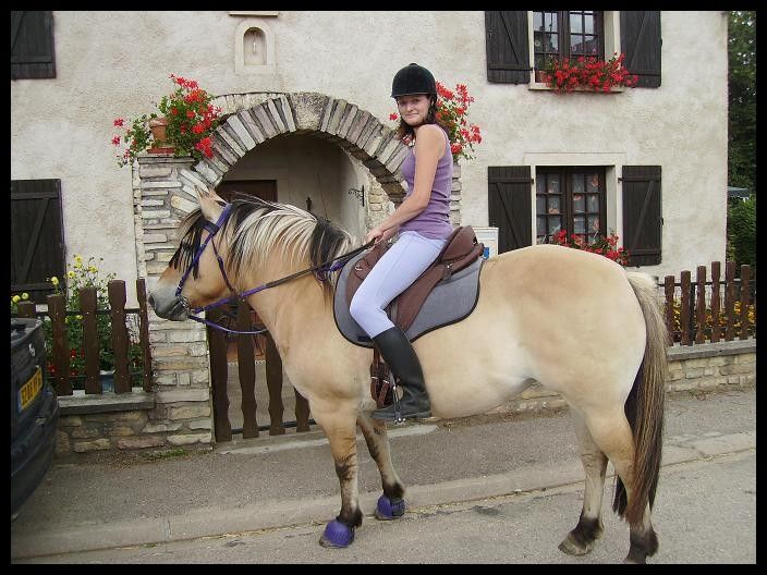 | Dire merci | merci ma kimette c'est vrai qu'elle fait dada de dressage oui je sais je suis naine et encore j'ai pas mis la photo qui casse le mythe ou j'ai l'air d'un gros microbe pour le mors j'ai changé et elle est beaucoup mieux !!! c'est un aiguille double brisure assez fin avec le rouleau du centre en cuivre . bon elle a encore tiré un peu au début pendant 2 min mais elle se met pu des pains dans la tronche comme avec l'autre .. les bandes ça fait déjà 3 mois que je l'ai ai et c'est vrai qu'elle sont super et ça lui va bien je trouve t'as plus qu'a venir essayer le char d'assaut tu verras c'ets rigolo au trot on vole |