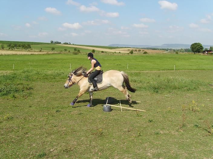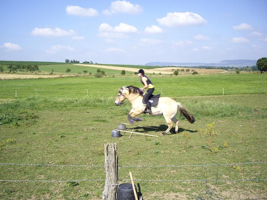 | Dire merci | Arf oui ces satanées mouches sont là quoi qu'il arrive... Aujourd'hui Indra a encore troué son flymask, sous mes yeux juste avant que je lui enlève à croire qu'elle fait exprès...C'est cool ce que tu commences à faire lutine88! Ce matin nous avons sauté. Elle m'a pété plein de 'barres' ma mère va me zigouiller...Quelques photos: ![]() ![]() ![]() ![]() ![]() Avec bien sure une position très très à chier je n'ai plus fait de saut depuis que j'ai quitté le club. C'est la deuxième fois depuis plusieurs années que je resaute avec Indra et on a jamais sauté bien haut Mais là ça va on voit qu'elle a envie quand même et le principal pour moi aujourd'hui était qu'elle ne dérobe pas |