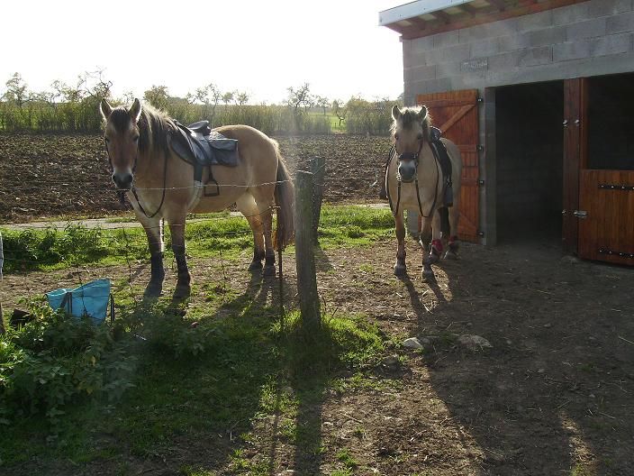 | Dire merci | Bon bah je vais essayer de résoudre le problème! En fait c'est le bord d'une route, une grande ligne droite, je galope presque à chaque fois.. On l'a déjà fait juste au trot aussi. Mais j'ai déjà entendu dire que c'était pas bon du tout de les faire tout le temps galoper au même endroit, car justement après ils reconnaissent etc..et j'étais presque sure qu'Indra est dans ce cas précis, mais bon on a toujours peur de leur faire du mal... Quand je me met sur la route elle chauffe moins, donc pour les fois suivantes je resterai sur la route, puis après dans l'herbe. Mais j'aimerais résoudre son problème de bouche dure! On m'a dit de lui mettre un mors plus doux, pensez-vous que ça peut être une solution?? Sinon les deux loutes se ressemblent un peu car elles ont le même papa en fait et leur mamans sont soeurs. Mais quand on les regarde de près elles sont super différentes! Pas le même gabarit du tout Alors sur le forum Fjord on m'a aussi demandé si elle avait maigri. Je ne sais pas trop, moi j'avais l'impression qu'elle avait gonflé..il faudrait que je la mesure toutes les semaines lol! |