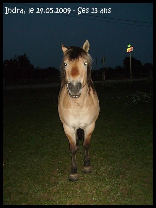| Dire merci | Coucou à toutes!! Aujourd"hui j'ai fait une balade avec ma bouille! Aujourd'hui j'ai tout eu: soleil, vent, temps grisou, orage, grelons et pluie!! Les 6-7 derniers km je les ai fait trempée et Indra également...ça aurait valu une photo!! Heureusement que j'avais ma bombe pour me protéger des grelons!! |