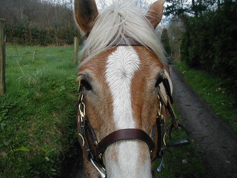 DéconnectéDire merci | Voilàààà, heureusement qu'on a pas annulé pour cause météo; on a eu une de ces chances (encore, j'ai vraiment un ange gardien météo ) . Que de la pluie et même de l'orage prévu; et ben on a eu une pauvre petite averse de rien du tout sur nos 18 km cet aprem. Super!! Un peu de vent, un peu de nuages, mais surtout, du soleil! Totalement imprévu, mais du soleil, specialement pour nous ![]() Urkhan a emmené son beau blond, Max; encore un Haflinger de plus dans l'équipe Max a douze ans, quelques kilos de trop, mais un coeur en ôr Il a du mal à marcher vite, mais heureusement pour urkhan, son petit trot est très comfortable ![]() Allez, place aux photos : Gember à gauche, Max à droite ![]() ![]() Max en détail : ![]() Gember en détail: ![]() Il fait tout svelte tout maigre à côté de lui Avec Max, Pitch et Gember, on a tout de même trois Haflingers bien différents ![]() |