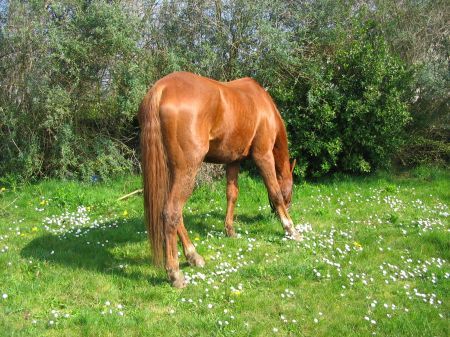 | Dire merci | la louloute progresse bien et vite je peut desormé la brossé assé tranquilement et lui faire ces soins (la belle a un ulcere de la cornée rien de grave mais goutte 2 à 3 fois / jours)![]() on commence le travail en carriere trés basique, c'est a dire tournée en longe et ceder aux pressions deplacement des posterieurs et anterieurs tous evolue plutot pas mal !!! puis viennes les 1ere balade en mains idem impec je decouvre que ma louloute et assé peureuse mais aussi trés curieuse et elle y va ce qui me plait ! bois plaine et plage sont donc visitée ![]() |
