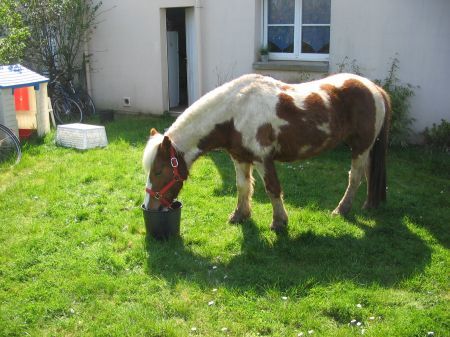 | Dire merci | hop elle est a vendre au meme prit que la louloute que je devais "sauver" de l'abatoire j'été prete a acceuillir une nouvelle pensionaire je decide donc de la prendre et hop une semaine plus tard la louloute debarque a la maison !!!![]() au debut pas la fete, elle est toute perdu et mon gros ce montre pas trés acceuillant habitué a sa ptite vie d'enfant unique tous partager du jours au lendemain lui a fait drole !!! mdr !!! au debut je lui fiche la paix !!! puis 5jours aprés son arriver je comence a la manipulé tranquilement, l'attrapé au champs, la faire marché a la longe et la brossé elle est craintive mais curieuse et heureuse du peu de soins que je lui apporte !!! |