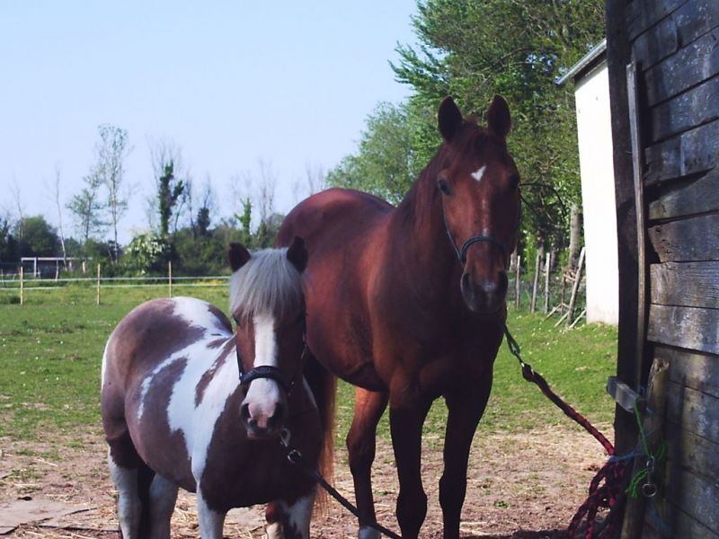 | Dire merci | voila je vous presente mon loulou et son histoire, elle a commencer en septembre 2002, mes parents été enfin d'accord pour que je m'actere mon premier cheval... je vais donc voir un monsieur de ma commune qui a beaucoup de terrains pour lui demander si il pourais me loué un champs... la il me repond que non mais que par contre il vend un cheval... connaissant le loustique je dit que je ne suis pas preuneuse, la dessus il me dit ecoute je l'emmene ds un mois a la foire d'ici la occupe t'en gratuitement pas de souci !!! le je me dit pourquoi pas sa m'occupera en attendant d'avoir mon cheval ! je vais donc voir le loulou je connaisser pas grd chose de lui a par que c'été un trtteux agé de 6 ans monter deux fois dans sa vie donc pas vraiment debourés... et sa faisait 3 ans qu'il été au champs a rien faire suite a une blessure au tendons... bref je m'occupe de lui je le brosse tous les jours maintenant je commence a monter dessus je me rend compte qu'il y'a du boulot monsieur a été debouré a la cravache il ne conais aps les jambes enfin bref et en plus il est gras a l'epoque j'été aps bien grde (comme aujourd'hui dailleur et du haut de mes 14 ans je faisait pas la maligne... puis le temps passe et le loulou progresse vite trés vite, en un mois je le monte assé facilement dans le champs au pas et au trot et je m'attache je decide donc de l'acheter... ! en octobre 2002 presque pour mon anniv !!! la le proprio me dit "je suis content car en realité ce n'été pas la foir qui l'attendais masi la boucherie !!! felicitation tu vien de sauvé un cheval" imaginer comme j'été fiere lol |