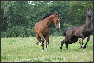 | Dire merci | et il y a celle là du petit Primero que j'aime beaucoup, surtout pour l'allure du cheval d'à côté ( c'est son oncle d'ailleurs )![]() ![]() |