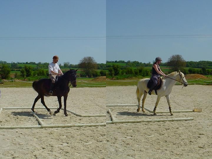 Déconnecté | Posito toujours aussi super.... l'extérieur est un pure plaisir avec lui, il passe partout, va aussi bien devant que derrière.. enfin le parfait loulou et cet aprem, 2nd cours pour nous deux.. Donc comme avait proscrit le chef, Posito avait une muserolle croisé "maison" et ptits éperons... alors pas du tout le meme cheval que la semaine dernière. Il a été agréable. concentré au travail... je pense qu'il a compris, la balade et la carrière (ou peut être moi.. MDR) Donc Tedi nous a fait faire différents exos : passer une bache, s'arreter entre deux plots, le U, slalom au galop... je crois qu'il a pris des photos... Bon y'a encore des trucs à revoir, et heureusement.. mais je suis super contente de cette séance |