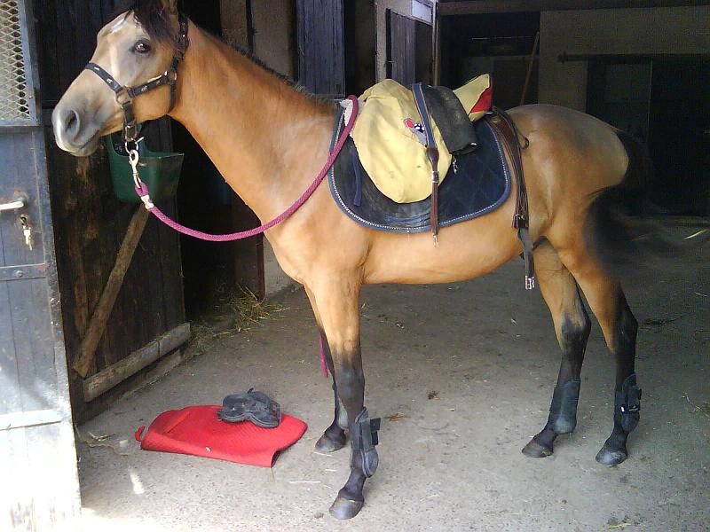 | Dire merci | Le hic maintenant, c'est qu'il ne confonde pas le couché, et la reverance... A travailler. Apres, petit rappel de base, la selle et les guetres ![]() |