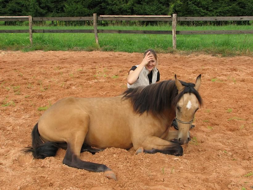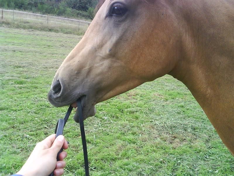 | Dire merci | Ah oui, j'oubliai Il ramasse tres bien les objets depuis peu... Ca fait des jours que j'essaie de mettre ca au point et a priori, ca y est, c'est assimilé! Pourvu que ca dure Bon, pas evident de prendre ca en photo, surtout avec un portable, et seule :-) ![]() ![]() Voili voilou! Régulierement, il marche sur des baches, des sacs de graines, execute pleins de flexions suite aux méthodes parelli, mais j'ai encore une bonne mise au point a faire sur L'EAU! Une vraie bataille! Mais il progresse bien! |