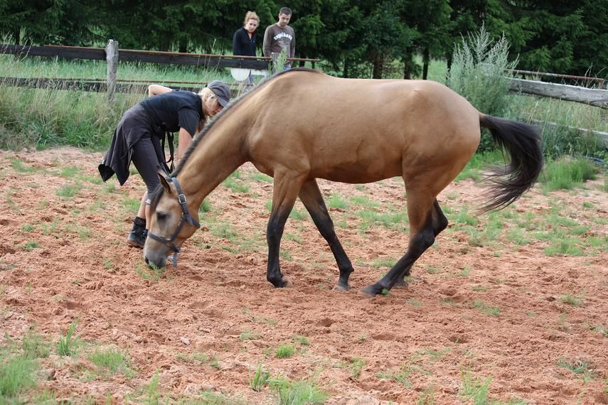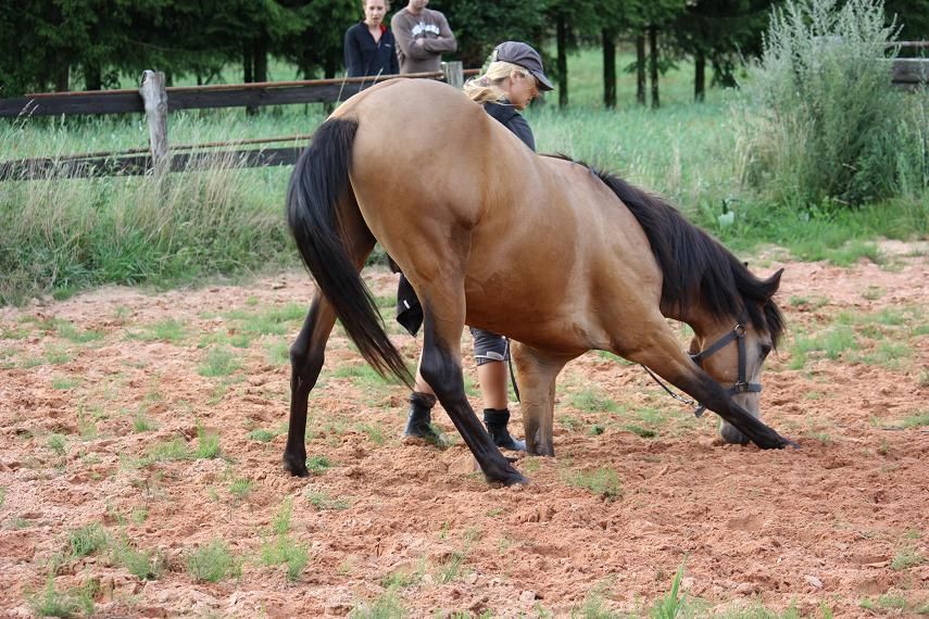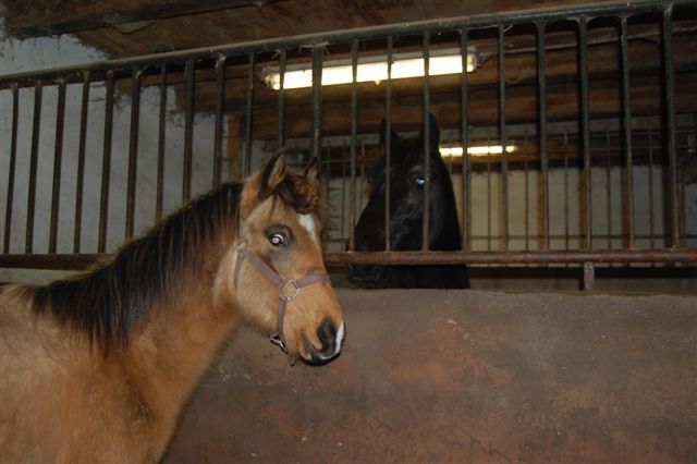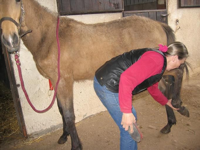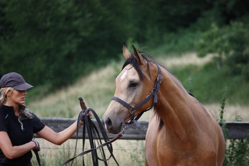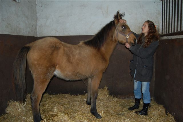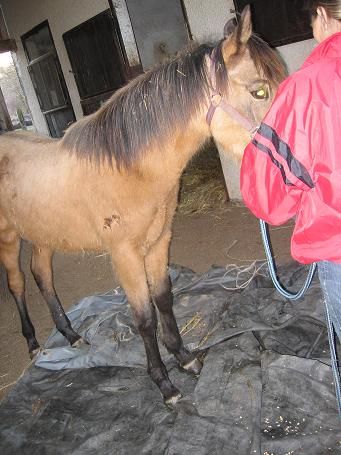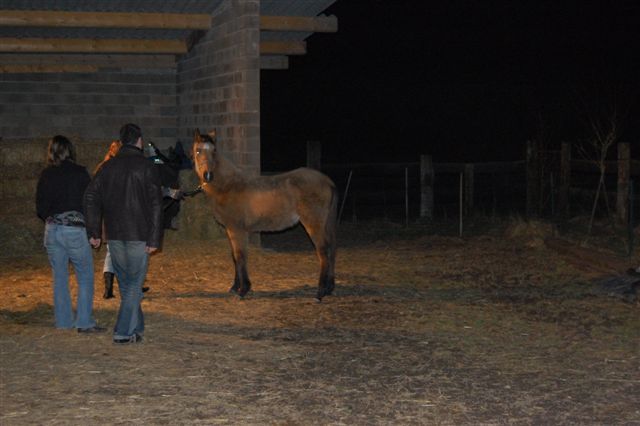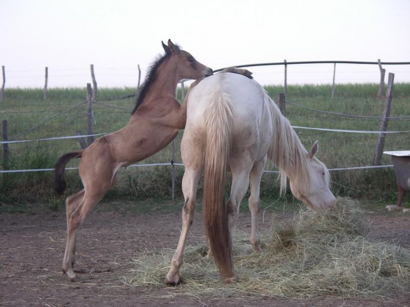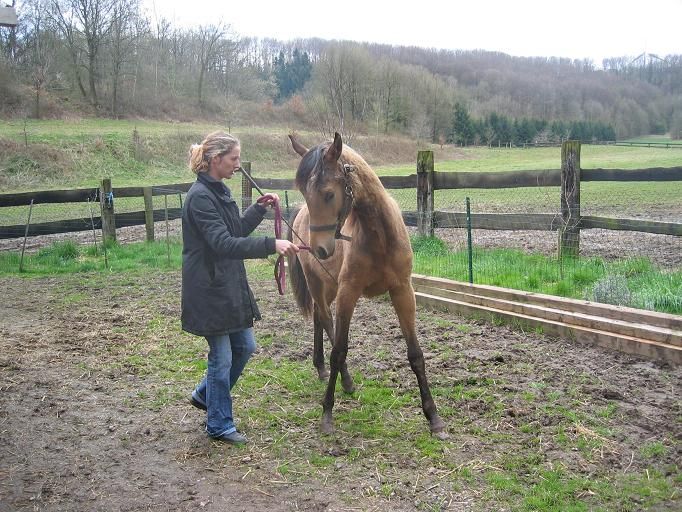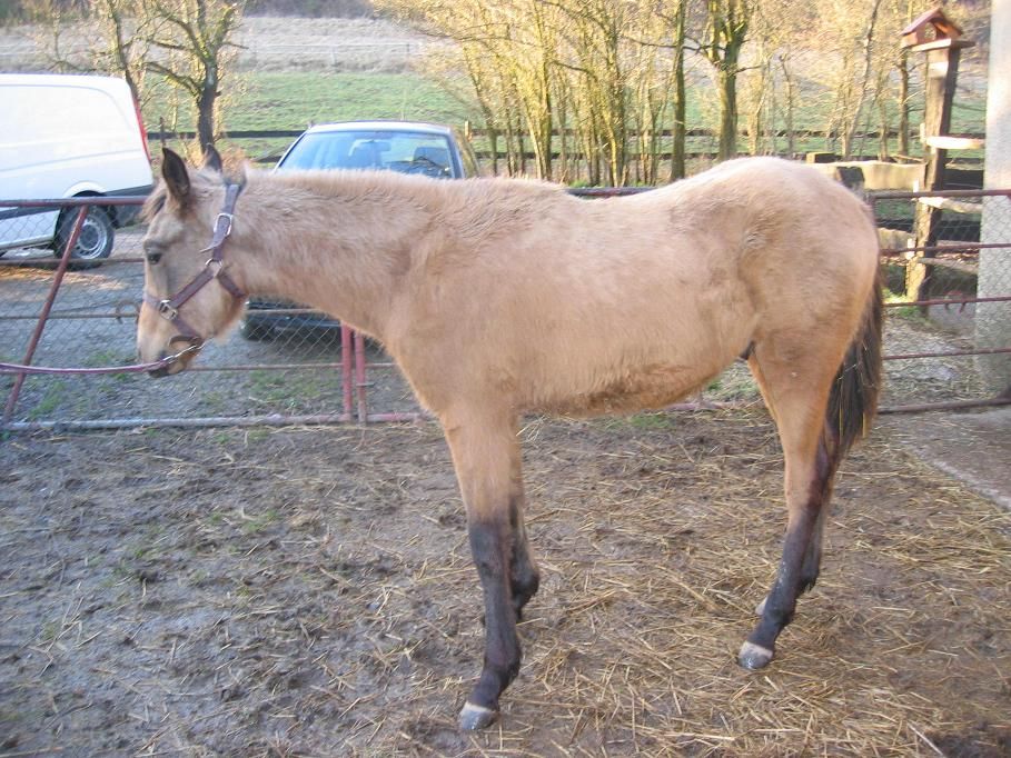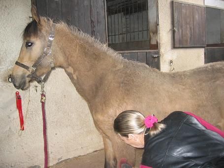 | Dire merci | Vous etes plusieurs a me demander des nouvelles depuis mes maccabres mesaventures avec mon defunt petit Tequiero.. Alors voilou, un post specialement pour mon p'tit bout, celui qui a su me remettre sur les rails, me redonner gout a l'éducation d'un poulinou, qui egaye mon quotidien, et qui s'avère etre tout a fait a la hauteur comme relève de mon Titi pré retraité (irremplacable bien entendu )Alors le voici tout petiot, crins au vent, au fin fond de l'ardèche ![]() ![]() Et déjà bien vigoureux, et chiant pour ses copains de pres... Mais c'est ce que j'adore chez lui ![]() Puis le voici a son arrivée, fin janvier, à 7mois, un beau petit Kdo d'anniversaire!! Bien velu, un peu sauvageon, timide, craintif, mefiant,peureux, terrorisé.. Il m'a vraiment fait de la peine.. Il est tellement attendrissant avec ses grands yeux de cocker... ![]() ![]() ![]() Voyant son temperement, je me voyais debordée de boulot, de seances de desensibisations, et de decouvertes du monde! Mais apres deux mois de boulots, a compter de deux seances de 5 a 10 min par semaines, voilà le petit bout metamorphosé! Il commence doucement a ressemblé a un cheval, et non plus a un lama :-) Et sa robe se revele superbe, bien doré comme je l'avais commandé ![]() Courageux, il monte dans le van comme un vieux cheval rodé de concour! ![]() Et marche aussi sur des baches horribles, gonflées et bien bruyantes! ![]() ![]() Et se laisse brosser ss meme etre attaché! Il a enfin compris qu on ne le frapperait pas coup de gourdin! ![]() ![]() ![]() Tres vite distrait et peu attentif, il semble être tres doué en dressage Bon, il n'a que 11mois, donc on va trop lui en demandé qd mm.. Mais le voici déjà en épaule en dedans ![]() |