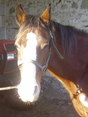 | Dire merci | Maintenant aprés ces quelques photos de "mise en bouche" Voici une partie de l'histoireQueen de Buftizon Trotteuse réformée Naissance a 2004 Par Blues Eyes America et Galaxie de Lune 1m58 ( la meme taille que moi !! )Elle a fait les entrainements de courses dans une ecurie en charente maritime, mais comme elle n'était pas bien grande et avait des problemes de caractéres ... Ne montais pas dans les vans ... Bah comme beaucoup de trottous direction boucherie sans se poser de questions ... Heuresement l'associtation AGAPE est passé par la ... Ainsi il recupere une petite jument peureuse car surement battue mais trés proche de l'homme quand elle le connait. Une petite jument ou il est impossible ou presque de la toucher en dessous du niveau des épaules, qui ne monte pas dans un van ou trés difficilement ...( je mettrais plus tard un mail que j'ai recu de la présidente de l'assoc qui explique sa "vie" et son sauvetage. ) Elle est resté environ 1 an a l'assoc dans un prés avec d'autres copain, pendant tout ce temps les membres de l'assoc essaye de lui redonner confiance, elle n'est pas débourré a la selle mais part en ballade en main sans aucun souci. Voila donc ma belle que je recupere le 15 septembre aprés 4 jours a essayer de la faire monter dans le van ... |