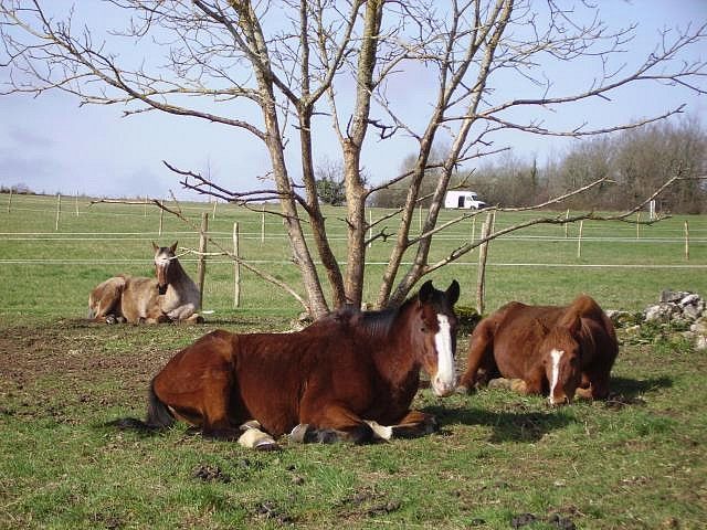 | Dire merci | bon voila la séance " j'apprend a marcher normalement et non plus comme un crapeau avec des bandes aux postérieurs ... "![]() ![]() ![]() ( ça c'est la photo " bon c'est bon t'as fini, je peux aller brouter avec les autres ??... j'ai pas envie d'etre prise en photo ça suffit ... !!) ![]() ( Aprés on a aussi le mode "chameau ... " )![]() ( retour au paddock avec tout le monde ! Qui a dit qu'on manquait d'herbe ... )![]() Ca c'est les poules suicidaires !! Elles passent tranquilou sous les chevaux, aucun a peur ! juste une question d'habitude... mais la premiere fois pour moi c'était impresionnant .!! ) ![]() Pour finir voila les 5 box qui sont en construction ... A vos commentaires maintenant !! ![]() |