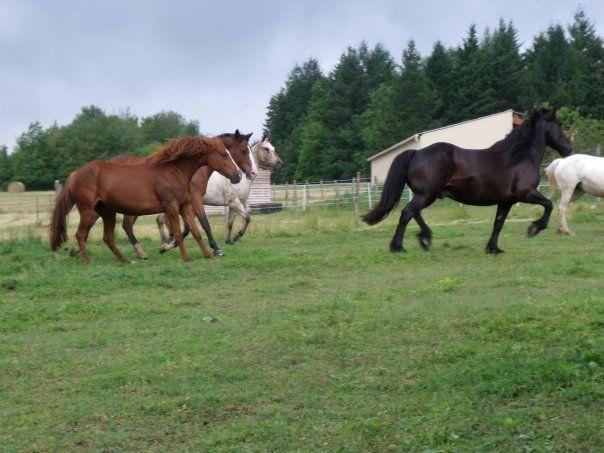 | Dire merci | Plus que 2 semaines .... ![]() Et je vous ai pas dit mais ya une petit nouveaux qui arrive à la pension : Un mérens Petit Morceaux ... dans les 1m50 pour 600kg !!! Voila au debut dans le paddock a coté du prés et ensuite integré aux autres si tout se passe bien. Il manquait plus que un noir dans le troupeau c'est fait ! |
