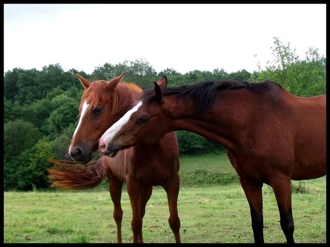 | Dire merci | 3 semaines c'est pas facile, mais les retrouvailles c'est tellement bon ![]() les hennissements quand on arrive au pré, rien de meilleur, a fait trop plaisir hein ![]() chouette pour le licol elle a l'air cool avec!faut retenter ![]() |