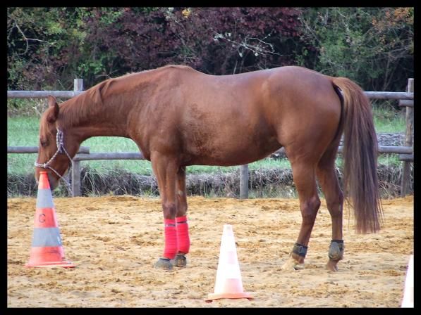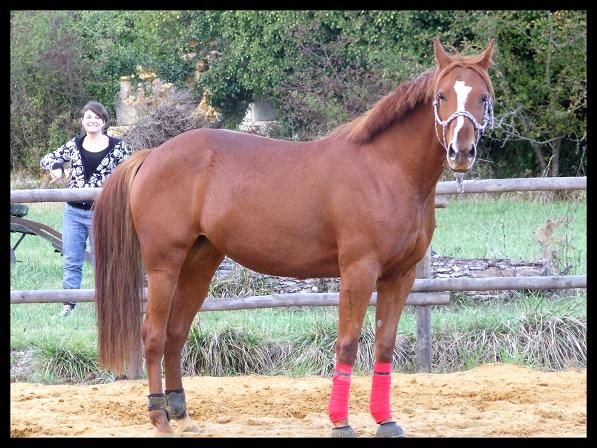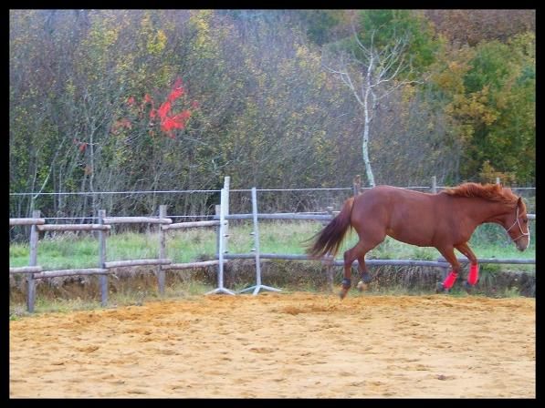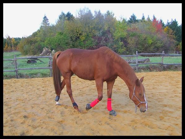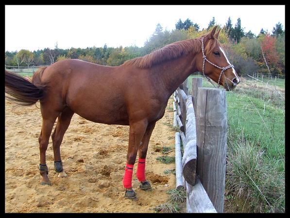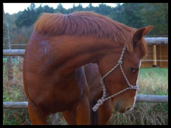 | Dire merci | Fraise elle va nous donner des cours la Caro t'en fait pas ... News d'avant avant hier Arrivé à la pension je savais pas trop quoi faire. 2 autres proprio étaient là, et vu qu'il faisait tres beau soleil, on a dit tiens pourquoi pas aller faire une tite ballade. Donc hop hop hop aprés un pansage comment dire .... j'ose meme pas definir l'état de Queen en faite . Aprés nous voila partis à 3, un Mérens à allure plus que reduite, un anglo à allure reduite, et une trotteuse à allure vive. On decide de faire la voie du Gaz ( c'est une piste de sable de peut etre 1km voir plus ) sur le trajet allé, l'anglo passe devant arrivé sur la voie du gaz on sort les gaz justement, Queen en tete rien qu'au trot , puis passe quand meme au galop. Bon là cétait sa journée j'ai peur des troncs d'arbres coupés sur le coté du chemin mais bon Par contre elle est passé dans toutes les flaques ! Aprés on a fait le chemin inverse avec Queen en tete, petit trop tranquilou et adorable a travers les bois. Ah oui j'ai decidé de nous faire passé dans un mini village au retour, avec des vaches mangeuses de chevaux. Queen s'est trés bien marcher en crabe Bon j'étais fiere d'elle a a bien regardé mais rien dit de plus. ![]() Par contre avant de partir de chez moi me suis dit que ça servait a rien que j'emporte l'APN vu que j'allais surement faire de la carriere du coup j'étais trop deçue !! Yavait trop de belles couleurs d'automne dans les sous bois.News d'hier Alors hier j'ai monté la grosse vache. Bah comment dire j'en ai chi** ! Elle a été plutot mignonne et tout mais alors punaisse elle m'enerve à pas se mettre en place, et à toujours t'arracher les renes quand tu mets trop de main.. ![]() Et donc la bonne nouvelle dans tout ça, c'est qu'une stagiaire ( elle a loupé de tres peu son monitorat je crois ) du club où elle a été debourrée vient monter 1 ou 2 fois par semaine un Mérens qui est à la pension pour le bosser ou donner des cours au proprio, du coup hier elle été là. Et elle m'a dit que si je voulais elle pouvait revenir lundi pour me donner des pistes pour bosser Queen et la faire placer correctement. Et le must, elle me prendrais rien Elle sait ce que c'est de monter seule et donc de prendre des defauts elle ce qu'elle veut s'est aider . ![]() Voila donc affaire a suivre lundi aprem. Oh le pavé quoi !!! Désolé |
