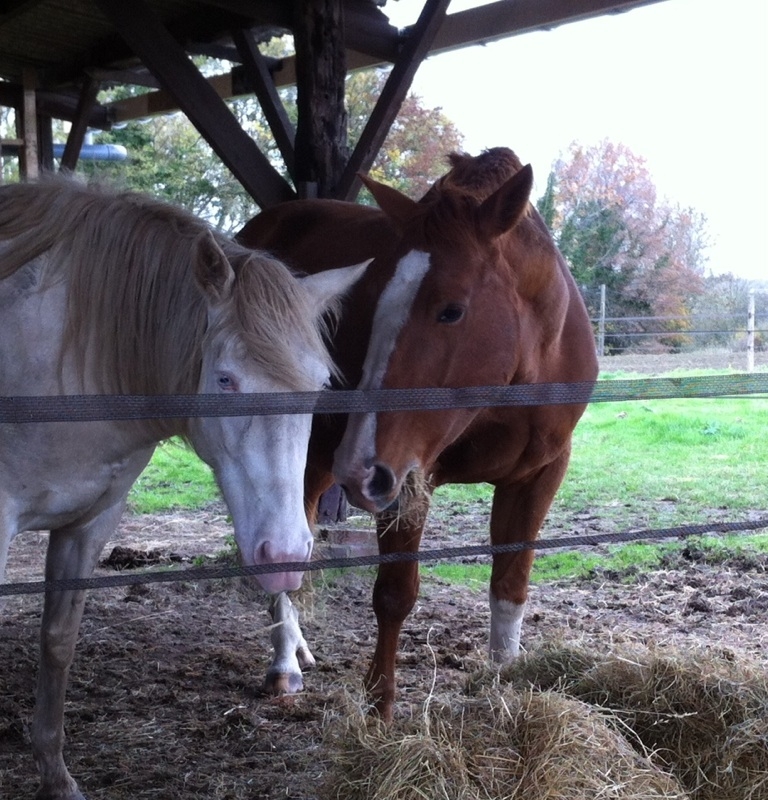 | Dire merci | Altanera s'habitue parfaitement à sa nouvelle vie, comme si elle avait toujours vécu là. Dunia l'adule véritablement, c'est très beau à voir. Alors que Tessa a mis une semaine avant de vraiment dormir, Altanera, dès son second jour dormait "toute plate" dans la prairie, alors qu'il y a quand même du passage, beaucoup de tracteurs notamment et qu'elle n'est pas du tout habituée à ça. Tout est facile avec cette jument qui semble trouver tout ce qui lui arrive complètement normal. L'éducation que lilou donne à ses chevaux est encore une fois démontrée impeccablement. Je rêvais d'un cheval de chez lilou rien que pour la qualité de son élevage, sa vision du travail du cheval et l'éducation des poulains... Je suis ravie au-delà de toute limite. La barre est haute, il va falloir que j'éduque le mini-Alta (et le mini-Dunia) aussi bien au minimum, il faut que je sois à la hauteur du cadeau et de la confiance inestimable de Lilou. |
