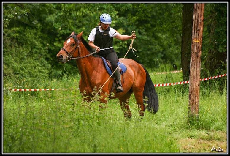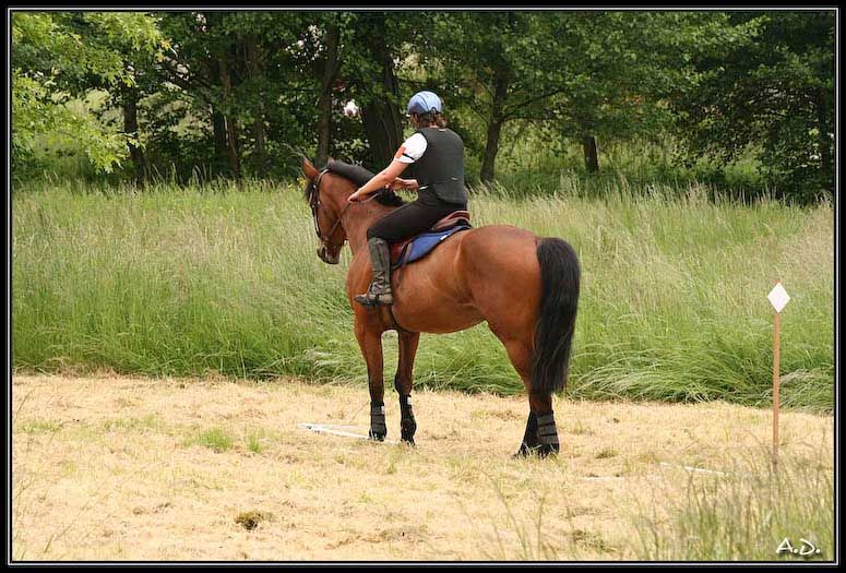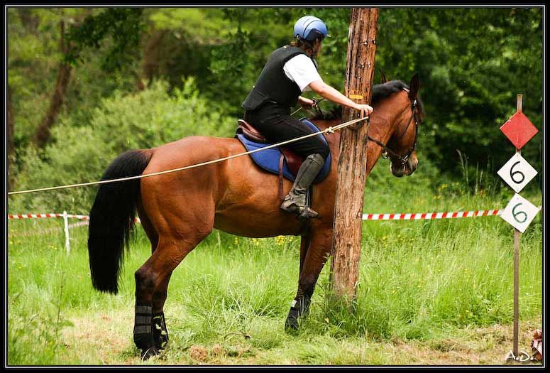 C'est rigolo, mais autant je trouve que le TREC à plusieurs c'est sympa; autant à chaque coup que j'ai été seule, c'est là que j'ai fait mes meilleurs POR... ou que je me suis le plus royalement plantée. En effet, seule avec ton cheval, y a pas à tergiverser 10 fois sur le chemin que tu empruntes... et ce que j'apprécie le plus c'est que si y a plantage, tu ne peux t'en prender qu'à toi meme!