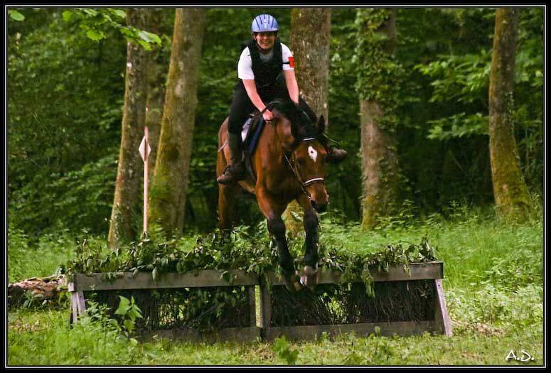 salsababy : oui c'est moi qui suis propriétaire de l'adorable monstre que tu décris. Mais en dehors de nos compétitions de dressage on fait beaucoup de bétises à pied, beaucoup de ballades, un peu d'obstacle, du cross (euh genre le petit tronc de gauche sur la 1e photo! ) et j'ai toujours adoré l'esprit du Trec.