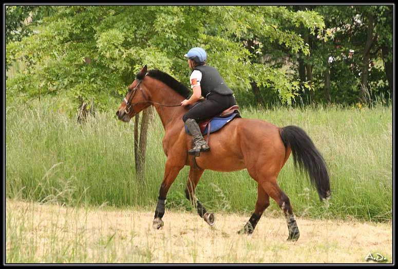 Heureusement il atterri désuni mais toujours au galop...du coup obligée d'aller un peu plus vite que d'habitude pour ne pas risquer la rupture.
