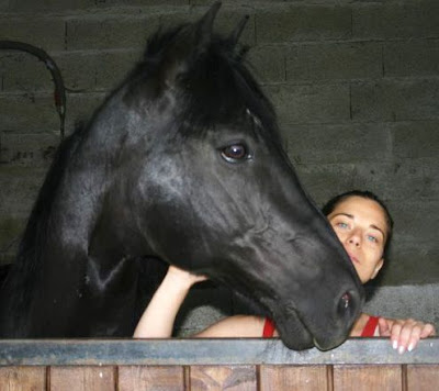 Sucre: Oui tout charbon, gros nounours l'hiver (bonjour les séances de pansage), bien fin et brillant l'été. Pour sa taille, il toise 1m54 (mesuré il y a peu) Il fait grand car je suis pas immense non plus (1m62) |
