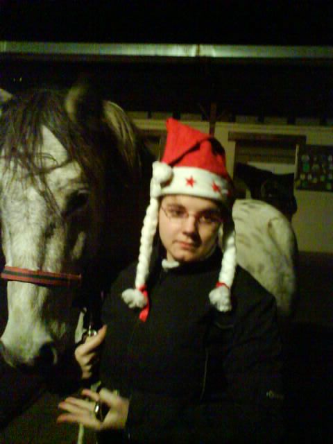 | Dire merci | bon, hier séance TREC dans le grand pré du fond... comme il a fallut monter un peu tout (100m de maitrise des allures, une immobilité/montoir, un slalom et 1croisillon), j'ai eu le temps que de prendre 1 photo de mon Quezzac avec ses tresses. A savoir qu'avant-hier il avait des tresses d'encolures avec toutes un noeud rose au bout... oui, ça a fait cheval de barbie, mais j'aimais bien! hier soir, il restait une tresse sur deux, pas si mal.. j'ai retressé mais j'avais plus de noeuds roses à mettre... donc y'a un noeud rose une tresse sur deux.., voilà le résultat: ![]() |