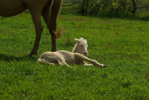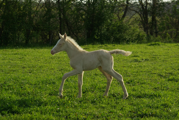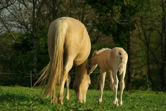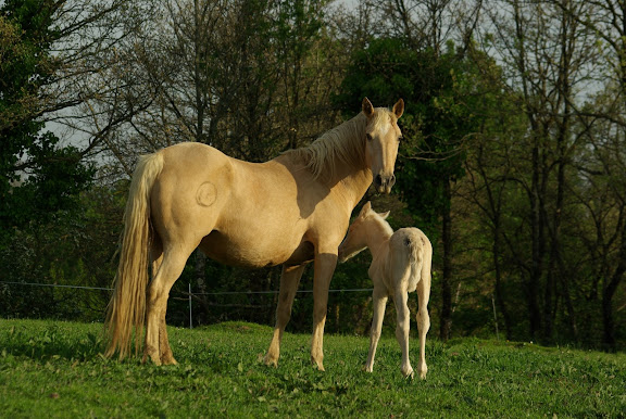 ) pour telle ou telle pouliche, voire les parents. Voici donc tout d'abord la première arrivée le 14 avril, Pépite d'Or, type shetland ONC de robe palomino fumé (si, si vous verrez plus tard