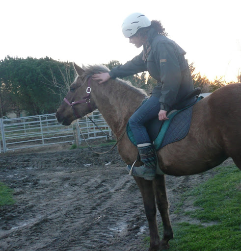 | Dire merci | Turquesa est partit balader avec copain PS, pour commencer à préparer les qualifs loisir ... Elle est mimi comme tout ! Elle est tellement ronde que je suis obligée de faire une certaine installation pour que la selle ne tourne pas ... d'ailleurs en descendant, la selle a tourné et s'est mis sous le ventre ! Turquesa a un peu bougé du coup, surprise, et en tombant je me suis empalé la jambe sur un piquet de cloture en pointe ... c'est l'horreur, quel sport dangereux |