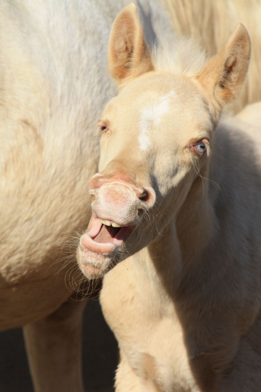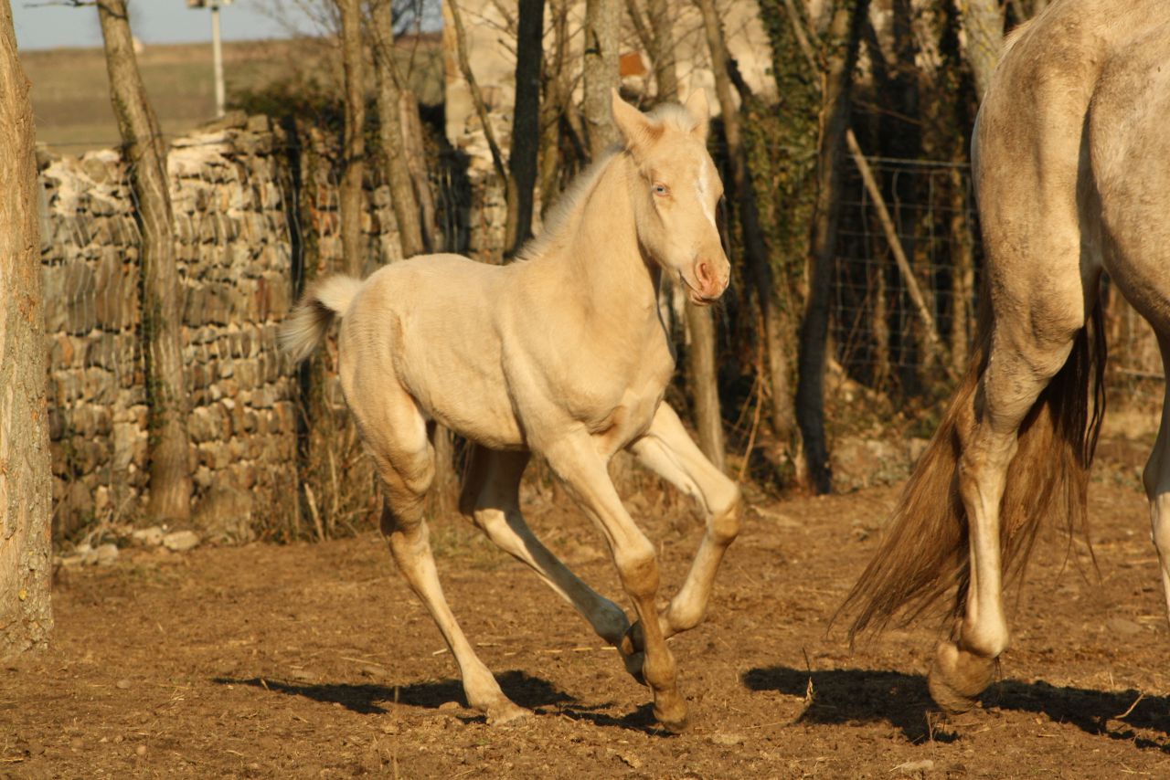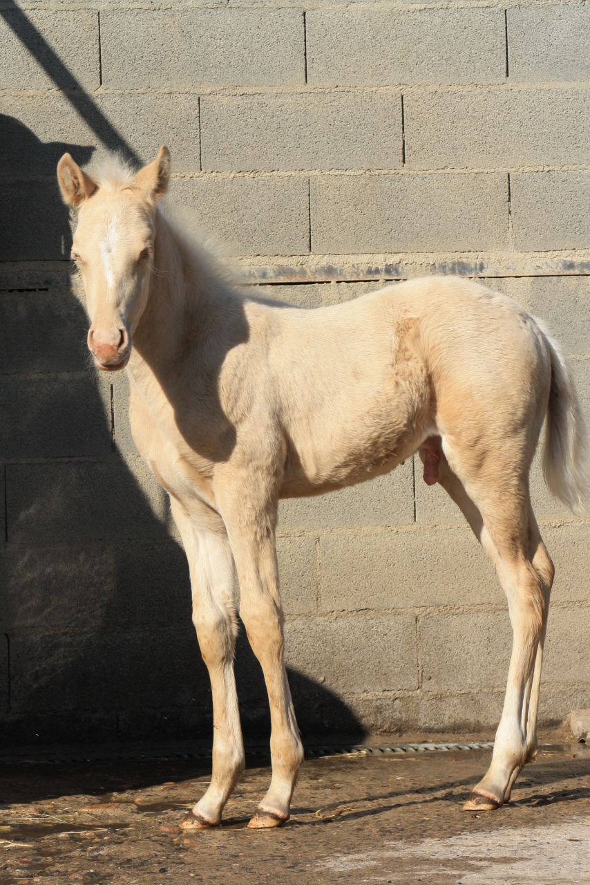 ) pour telle ou telle pouliche, voire les parents. Voici donc tout d'abord la première arrivée le 14 avril, Pépite d'Or, type shetland ONC de robe palomino fumé (si, si vous verrez plus tard