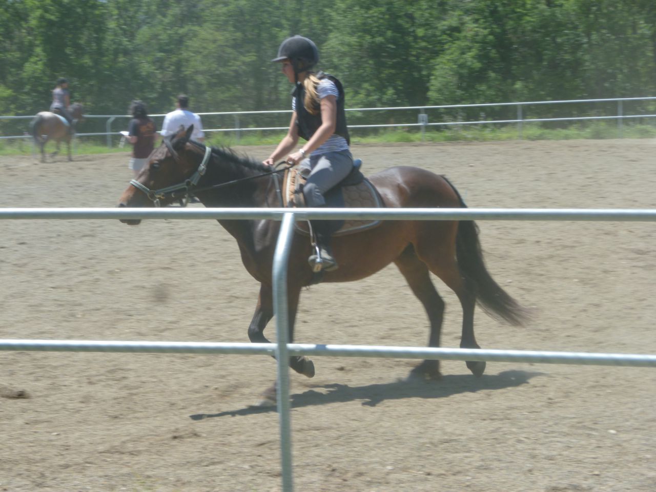 | Dire merci | Ben, il y a un souci avec les photos car je les ai vues sur l'apn mais après elles n'aparaissent pas dans le dossier Je vous mets donc les 3 que j'ai en attendant une solution...D'abord donc modèle et allures. C'était pour cela que nous y était allées, car le directeur du lycée était là pour noter Estelle sur le débourrage. Pauvre fille, elle a stressé un max mais géré aussi un max Et finalement elle a récolté une belle 19/20 ![]() Voici Vedette au modèle ![]() Ensuite nous sommes passés dans la carrière pour les allures - pas, trot, galop, sociabilité vis à vis d'autres chevaux, confort sous la selle, manque de défense... ![]() Dernier tour dans la carrière ![]() puis nous sommes passées dans un pré pour l'arrêt d'urgence. Très peu de chevaux ont fait un arrêt ! Un cheval a fait une véritable rodéo, se débarrassant de sa cavalière en route (ajourné immédiatement). Vedette a gagné un point car elle a fait un arrêt propre (elle a fait toutes les épreuves en licol). |